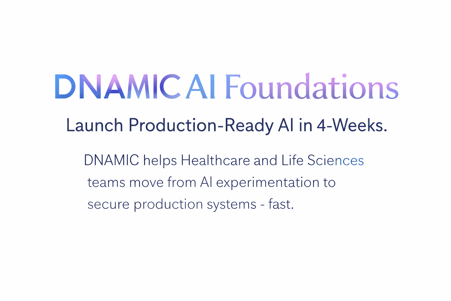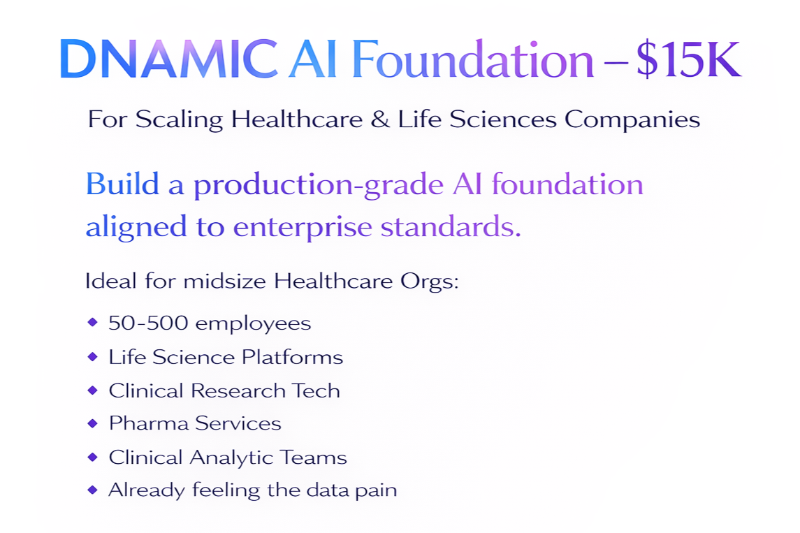 DNAMIC AI Foundations establishes a production-ready AI architecture designed for Healthcare and Life Sciences environments.