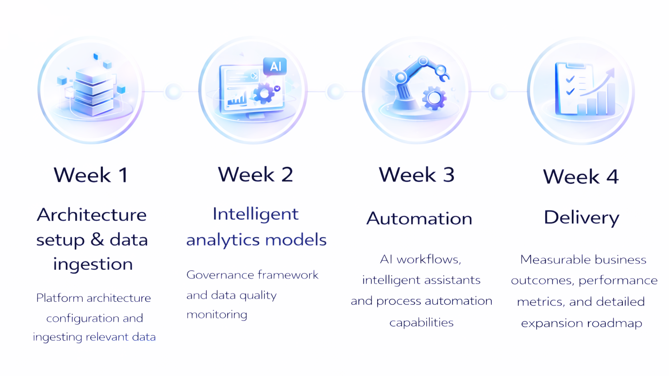 In four weeks we deliver one production-ready AI workflow.